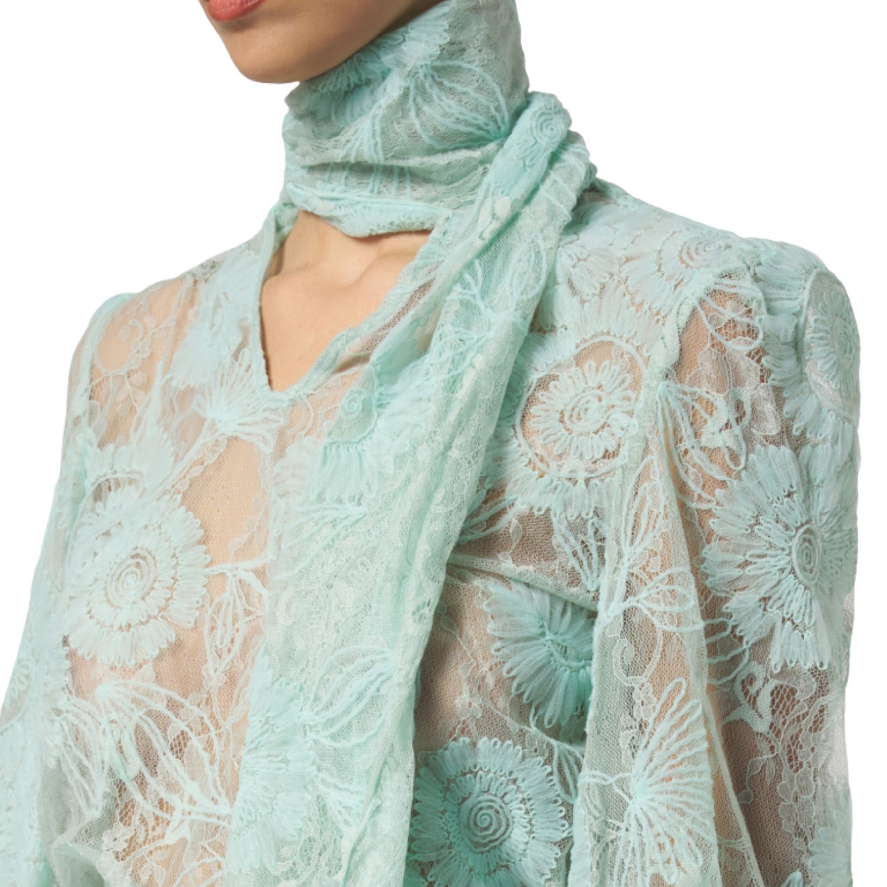 Tessuto in pizzo floreale trasparente
