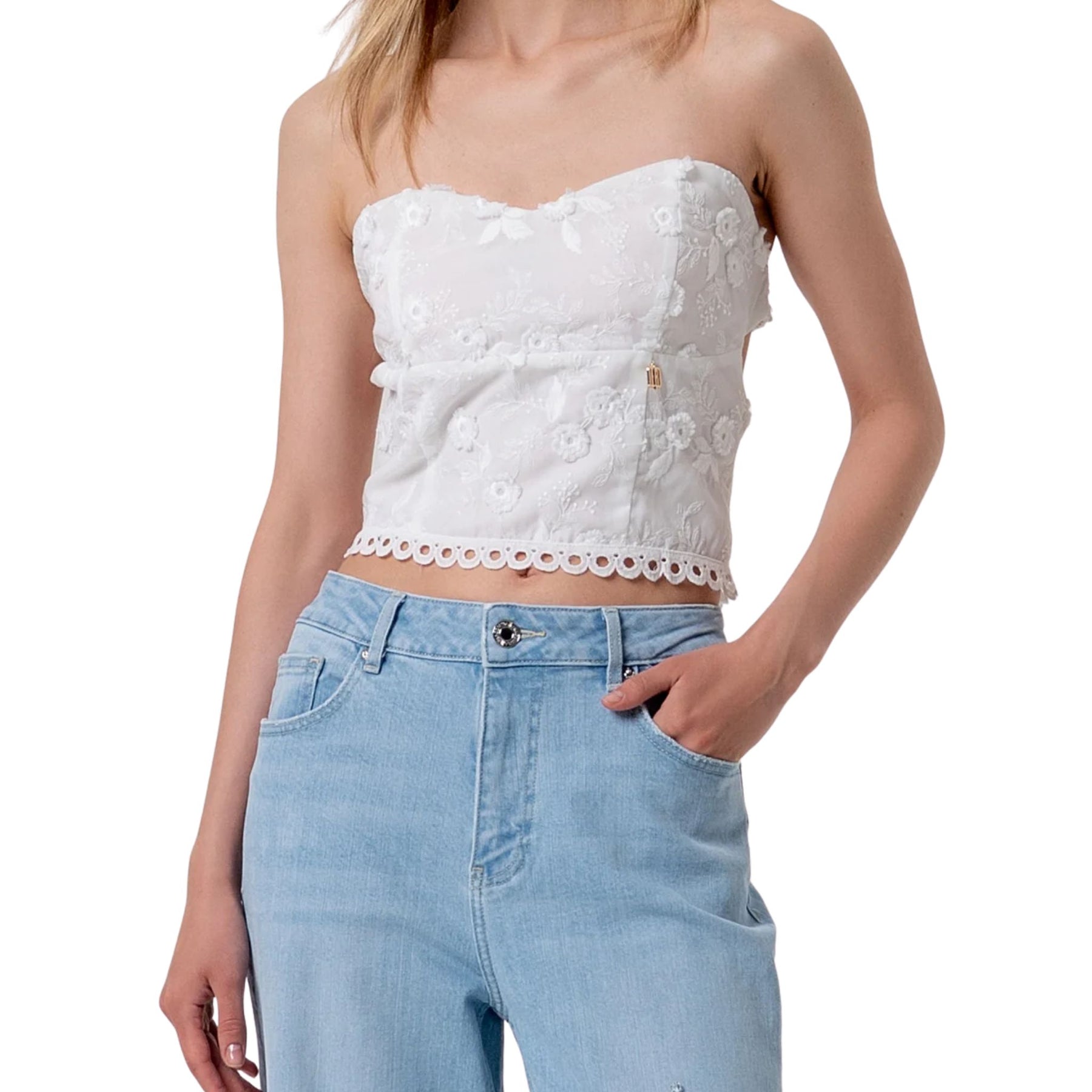 Fracomina-Top slim bustier in pizzo-Bianco